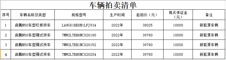 7、启腾N50栏板货车、启腾N50厢式货车等机动车4部。
