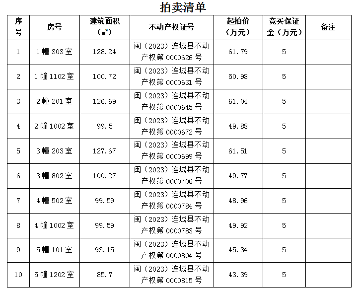 2024年10月6日公开拍卖福建省龙岩市连城县莲峰镇西台路98号鹧鸪花园10套房产