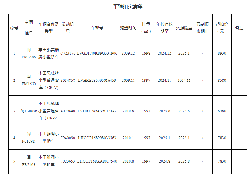 2024年10月24日公开拍卖剩余砂石土一批、拆解报废的机动车111台及凯美瑞、雅阁、柯斯达等机动车13部