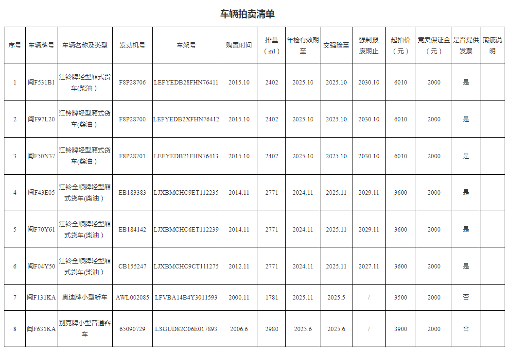 2024年12月5日公开拍卖龙岩烟草大厦附楼房产租赁权、2025-2026年度旧烟箱一批约12万个及奥迪、GL-8和轻型货车等机动车8辆