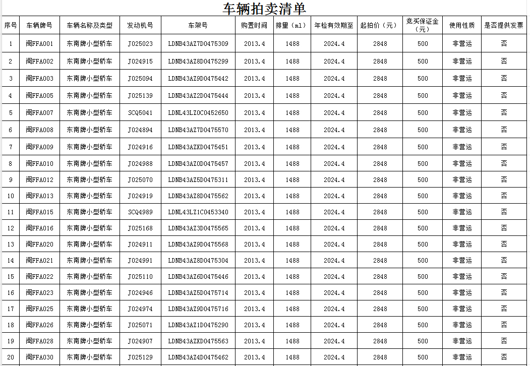 2025年1月3日公开拍卖新罗区凤凰路49号B幢308房产(方龙大厦)、机动车4辆(宝骏客车、比亚迪客车、东风货车、长安货车)、东南牌小型轿车35部