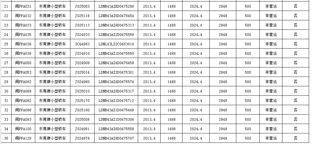 2、东南牌小型轿车35部;