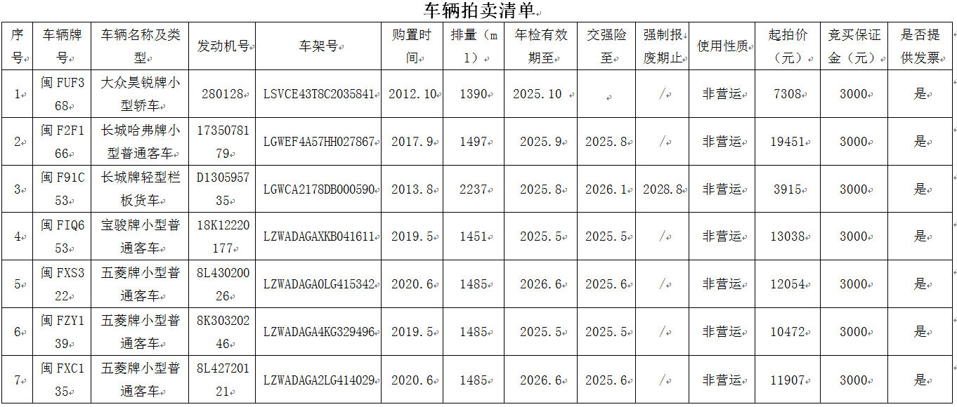1、大众轿车、长城小型客车、五菱小型客车、宝骏小型客车、长城栏板货车等机动车7部;