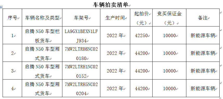 7、启腾N50栏板货车、启腾N50厢式货车等机动车4部。