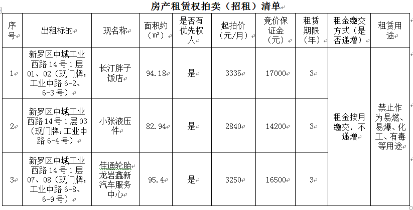 2、龙岩市新罗区工业中路3处房产3年租赁权;