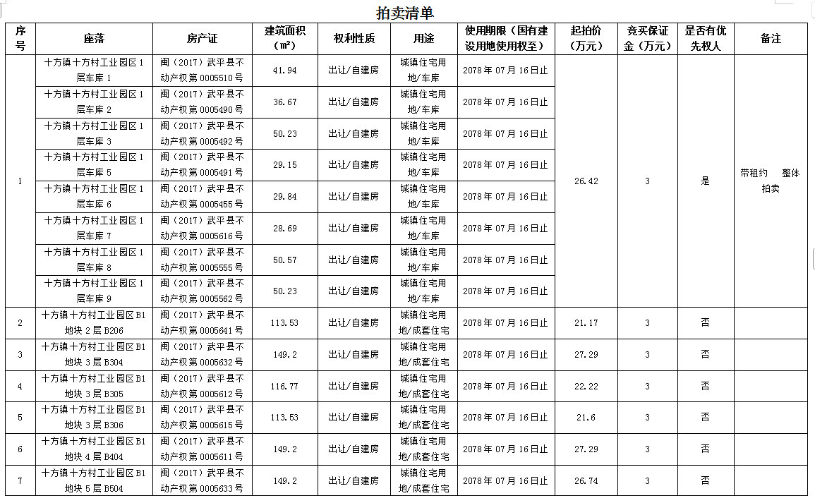 受委托,我司定于2026年3月5日上午09:30在中拍平台(https://paimai.caa123.org.cn/)公开拍卖龙岩市新罗区西城莲花新村、南城后门前安置小区、铁山镇洋头村、白沙镇白沙村、永定区坎市镇先富东街房产及武平县十方镇十方村工业园区部分店面、商场、套房及车库。